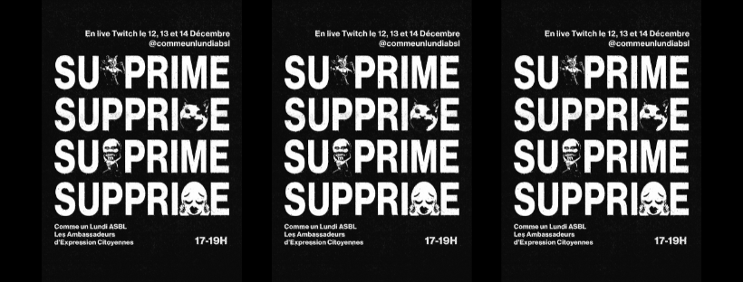 Comme un Lundi débarque sur Twitch avec le projet Supprime : un projet de 3 lives sur 3 jours avec les Ambassadeurs d’Expression Citoyenne autour de la question : Quels sont les risques d’une exposition numérique quand on appartient à une minorité ?