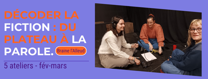 Des activités ludiques d’improvisation, des interviews (de comédien·nes, de spectateur·rices…), des discussions et des jeux de rôle. 5 ateliers pour créer des ponts entre le théâtre et la fiction sonore. Au Centre Culturel de Braine l’Alleud les jeudis de 17h à 19h.